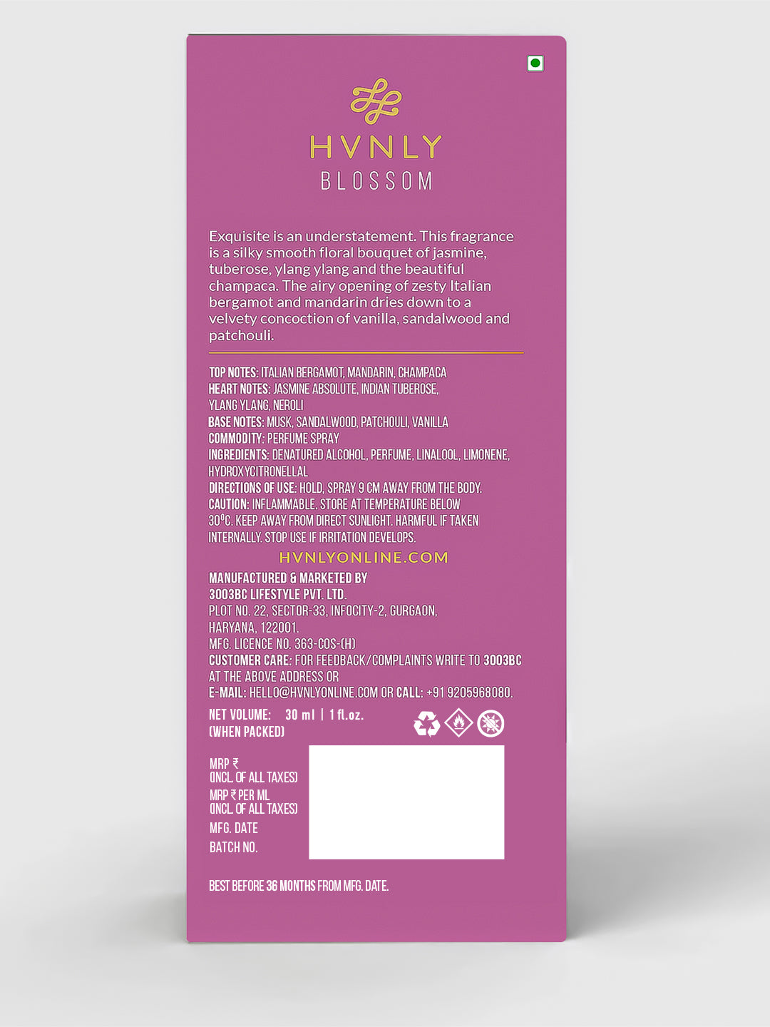 Glad, I ordered my hvnly blossom perfume. It has a pleasant and appealing frangrance. Blossom is my favourite fragrance from hvnly range of perfume.