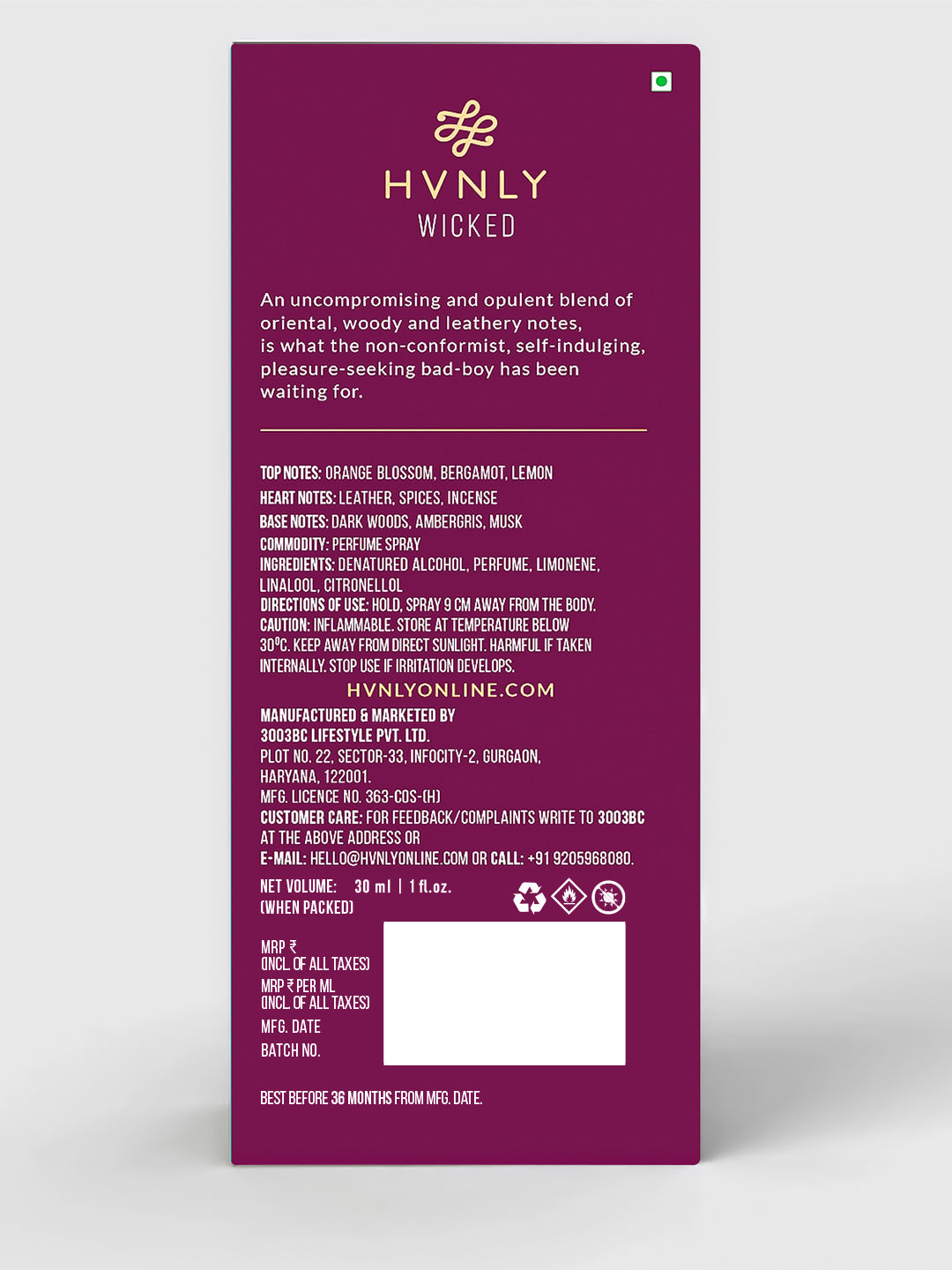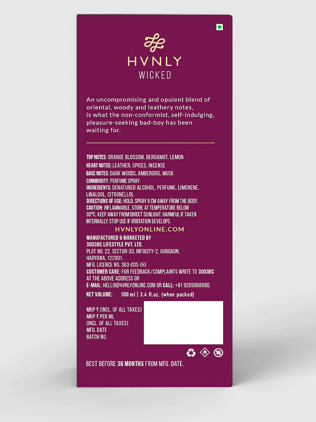 Manufactured By: 3003BC Lifestyle Pvt. Ltd.